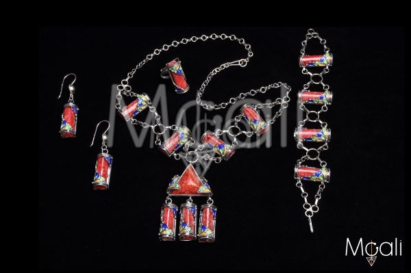 Petite parure kabyle en argent et corail