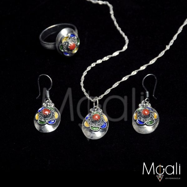 Petite parure kabyle simple en argent et corail